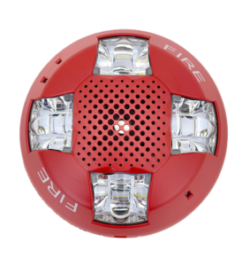Sirena con lámpara estroboscópica, 2 hilos, montaje en techo. Color rojo o blanco.