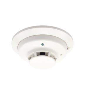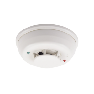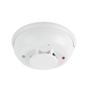 Detector de humo fotoeléctrico con sensor de temperatura fija 57°C, sirena interconstruída, tecnología convencional, 2 hilos. Incluye base de montaje de 6".